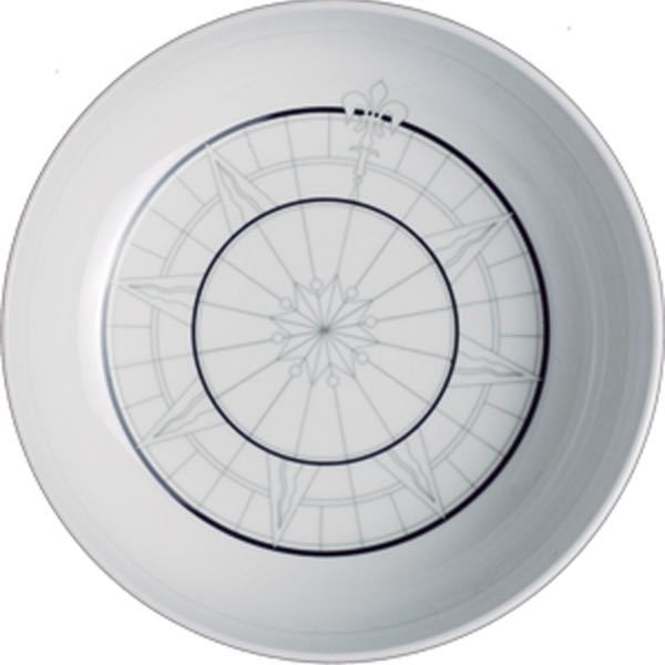 New Polaris er Kraftigt brudsikkert melamin service. Hvidt med kompas mønster