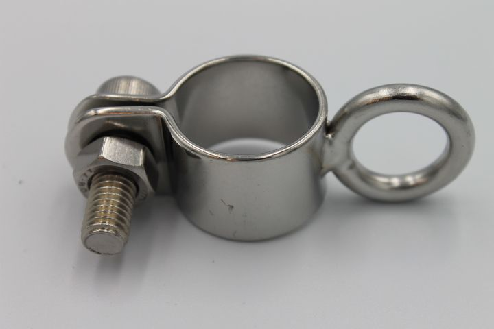 Rørfæste i A4 med påsvejset ring til f.eks. søgelændermontage.